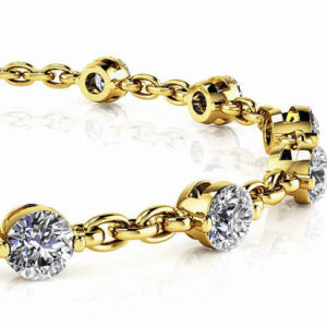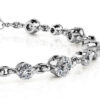 Discover the charm and beauty of this intriguing diamond bracelet. Each brilliant round diamond is prong set and alternates with a fine double link chain to capture both the sparkle of the diamonds and luxury of the gold or platinum setting of your choice. Available in 3 carat weights.