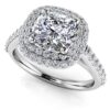 Bring that sparkle to your engagement with brilliant emerald cut diamonds. Nestled by a combination of round cut diamonds, this sparkling three stone emerald cut engagement ring will intrigue with its fire and shine. Design by selecting the total carat weight, metal type, color and clarity of your choice.