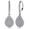These dazzling diamond drop earrings have a diamond lined lever back and a square shaped dangle. The square shaped dangle features a sparkling cluster of round diamonds. Customize this design in white gold, yellow gold or platinum and choice of six diamond qualities.