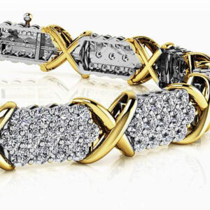 Stylized X Triple Row Diamond Bracelet In Yellow Gold White Gold And Platinum