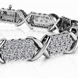 Stylized X Triple Row Diamond Bracelet In Yellow Gold White Gold And Platinum