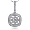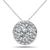 This beautiful diamond pendant starts with a diamond lined hoop connecting the chain with the drop portion. The pendant below hangs perfectly from a tiny loop and captures the eye with its’ incredibly sparkly design. A gorgeous center diamond is secured with prongs and bordered by a row of smaller round diamonds. With 17 diamonds total, you can choose from four sizes ranging from .33 to .76 total diamond carat weights. Customized in gold or platinum, this diamond pendant is the perfect addition to any jewelry wardrobe!