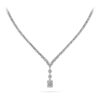 Brilliant round diamonds in a 3-prong setting dripping into a gorgeous halo teardrop pendant, have you ever seen something so elegant. The complimentary shape sits well on any collarbone and draws the eye smoothly to the stunning pear shaped center stone. Customize with your favorite metal type and diamond quality! All gemstones are AA quality.