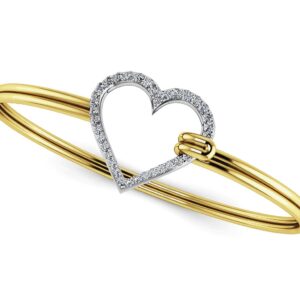 Show your love with this stunning diamond bangle bracelet from our Unity Collection. The 33 brilliant round diamonds sparkle into a perfect heart shaped center closure, allowing the flexible solid gold bangle to encircle her wrist. Inspired by love and romance, express all the love you hold in your heart with this sparkling beauty.