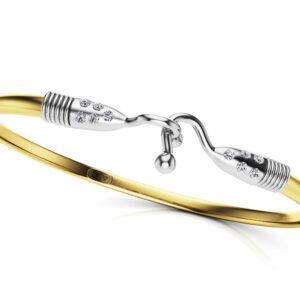 This beautifully designed bracelet is part of our Unity Collection. This diamond accented, coil dipped design exudes synergy between a couple. The solitary hook bonds a timeless relationship.