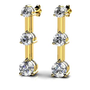 Three Prong Triple Diamond Earrings In White Gold Yellow Gold Or Platinum