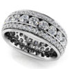 You get three times the beauty with this dazzling diamond eternity ring. The center row has channel set princess cut diamonds and the two outer rows have prong set round diamonds. The diamonds are set all the way around the ring in a classic eternity style. Create an unforgettable anniversary ring or complement to an existing diamond ring when you choose from gold or platinum!