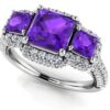 Three Stone Diamond Double Halo Anniversary Ring In Platinum Or Gold