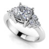 Make her a dazzling promise with this gorgeous engagement ring! This ring features three round diamonds in a shared prong setting on each side of the center stone for a truly unique and beautiful design. Custom-make with your preferred metal type, total carat weight, and diamond quality.