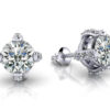 Wow! What else can we say. These are incredible, very unique and lovely stud earrings featuring a triangular shape. Outside is lined with brilliant diamonds, and of course, in the center, our designers have carefully placed 3 diamonds, arranged in a triangle shape. They feel substantial, they look substantial and you’ll be delighted with these each time you put them on! Available in either gold or platinum, and in 3 incredible sizes, choose between .30 and .60 carats total diamond weight, simply perfect!