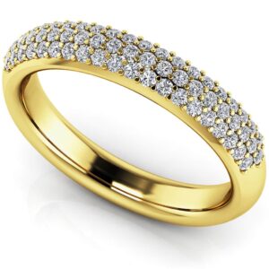 Triple Row Diamond Pave Wedding Ring In 14K 18K White Yellow Gold Platinum
