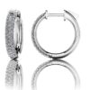 These lovely diamond hoop earrings have a wonderful inside out design. The front of each hoop is lined with three rows of pave set diamonds. The inside is also lined with three rows of sparkling diamonds so when from the front and side you can see radiant diamond sparkle. There are 4 sizes to choose from ranging from 1.54 carats to 2.86 carats of total diamond weight. Measuring at .88 inches, these small hoop earrings add the perfect amount of sparkle to your look! Customize a pair for yourself or someone special in yellow gold, white gold or platinum today! These hoop earrings are also offered in other sizes.