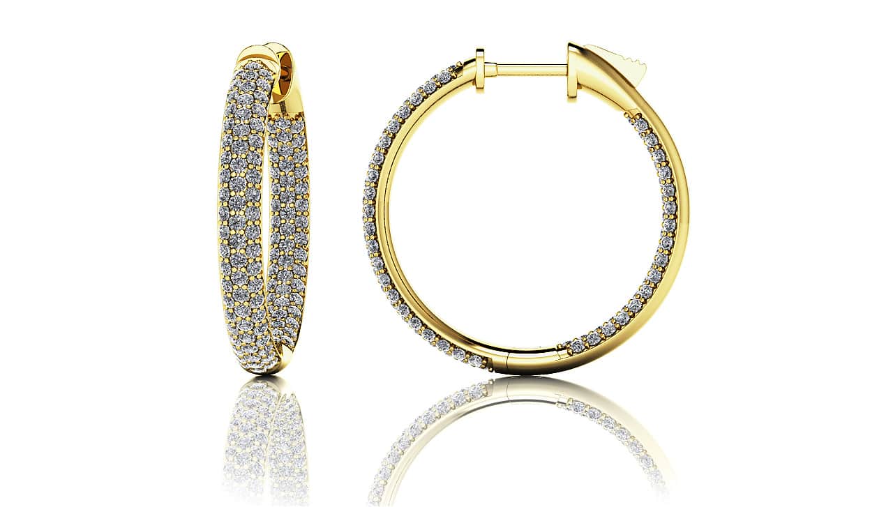 Triple Row Inside Out Diamond Earrings Small In 14K 18K Yellow White Or Rose Gold