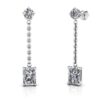 A perfectly round diamond drops down to highlight a vibrant emerald-shaped gemstone of your choice. Available in a gold or platinum setting in a variety of natural, untreated gemstones, design your unique pair today!