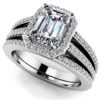 Vibrant Love Emerald Cut Three Stone Bridal Set In Platinum Or Gold